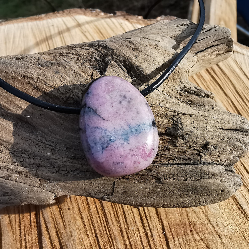 Rhodonit Trommelstein gebohrt aus Madagaskar. Du bekommst genau den abgebildeten Stein.