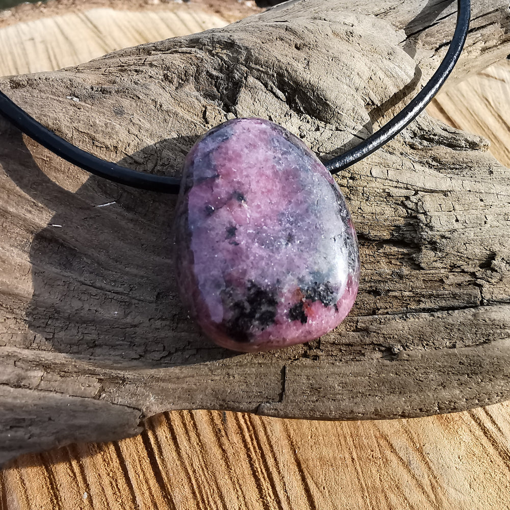 Rhodonit Trommelstein gebohrt aus Madagaskar. Du bekommst genau den abgebildeten Stein.
