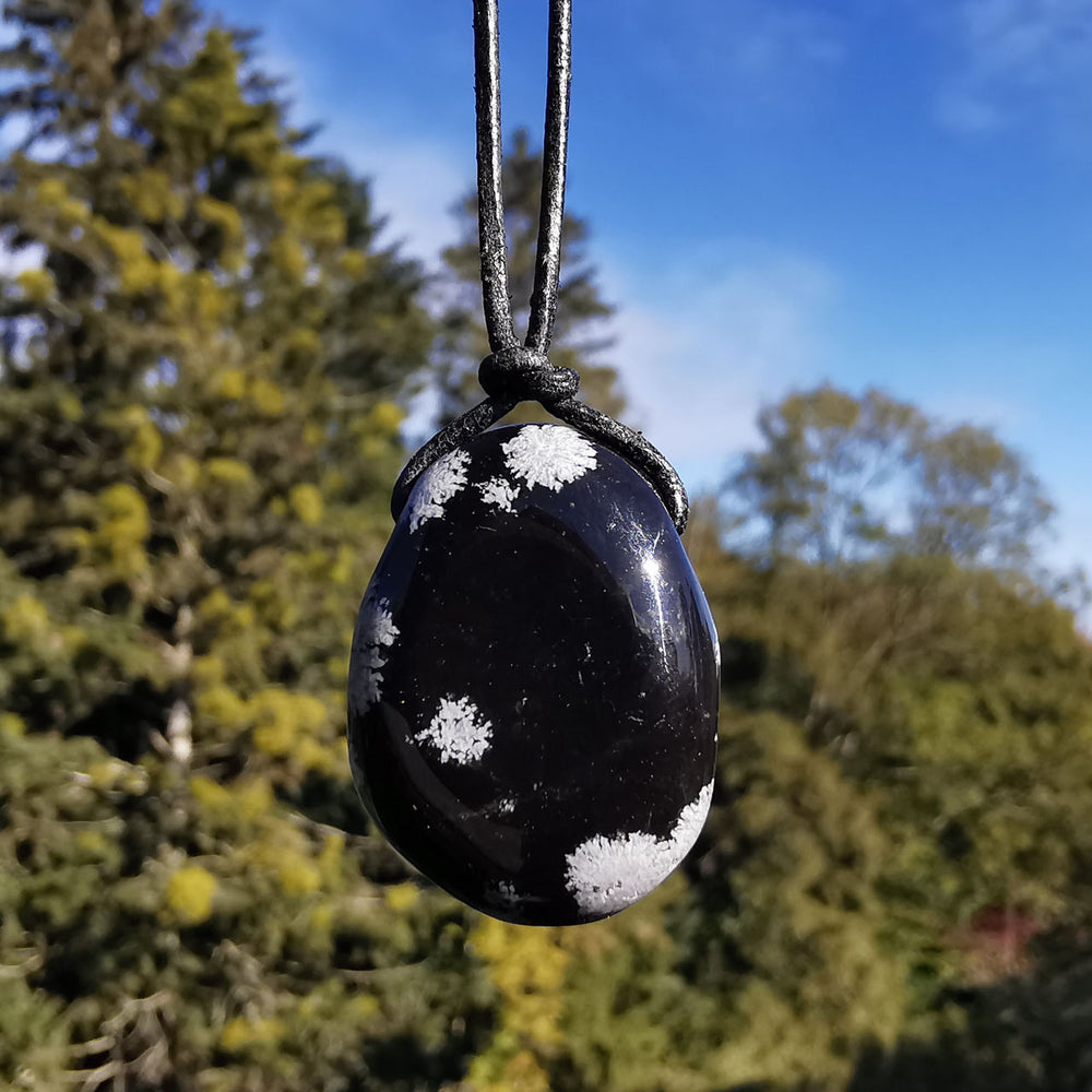 Schneeflockenobisidian Anhänger gebohrt mit Band (3)