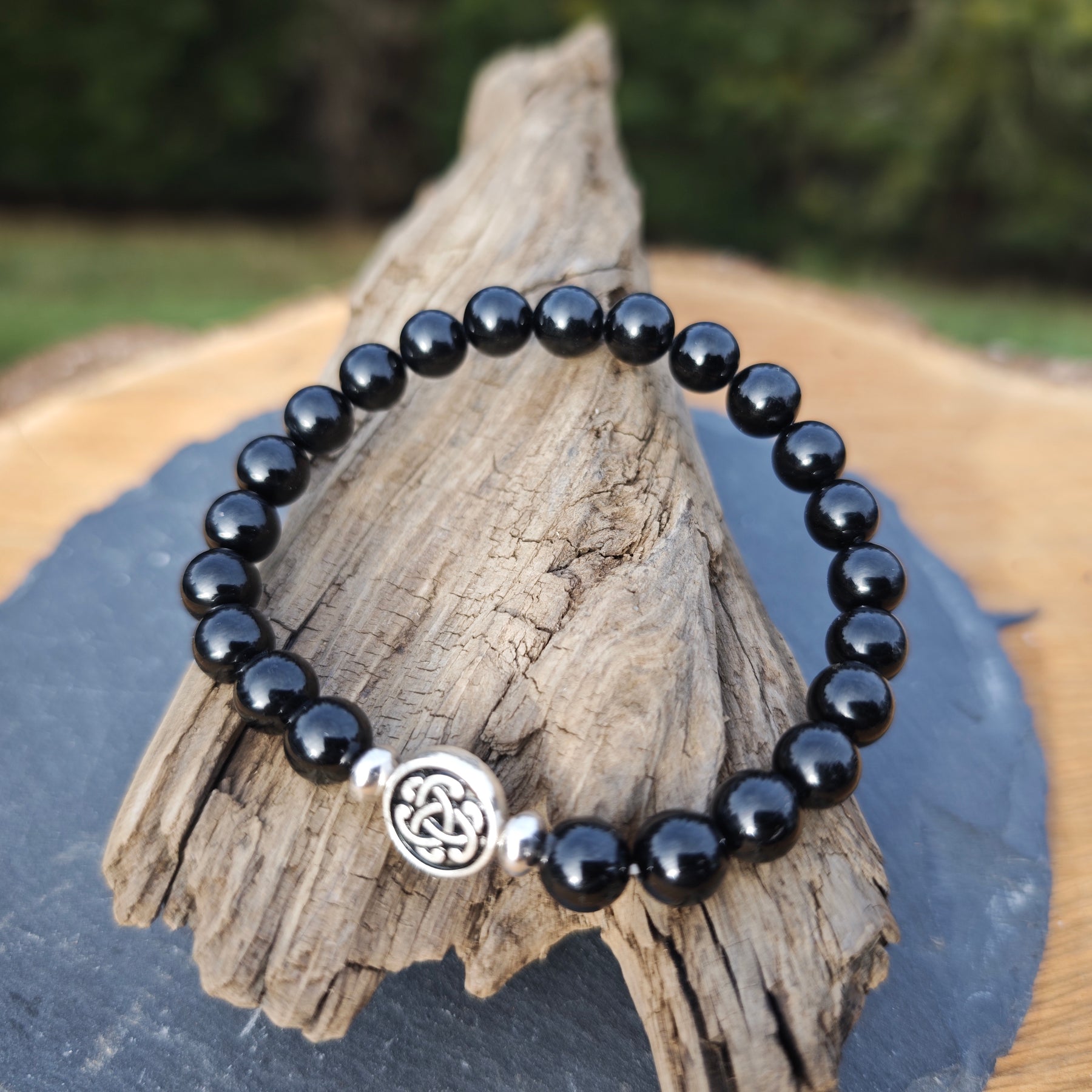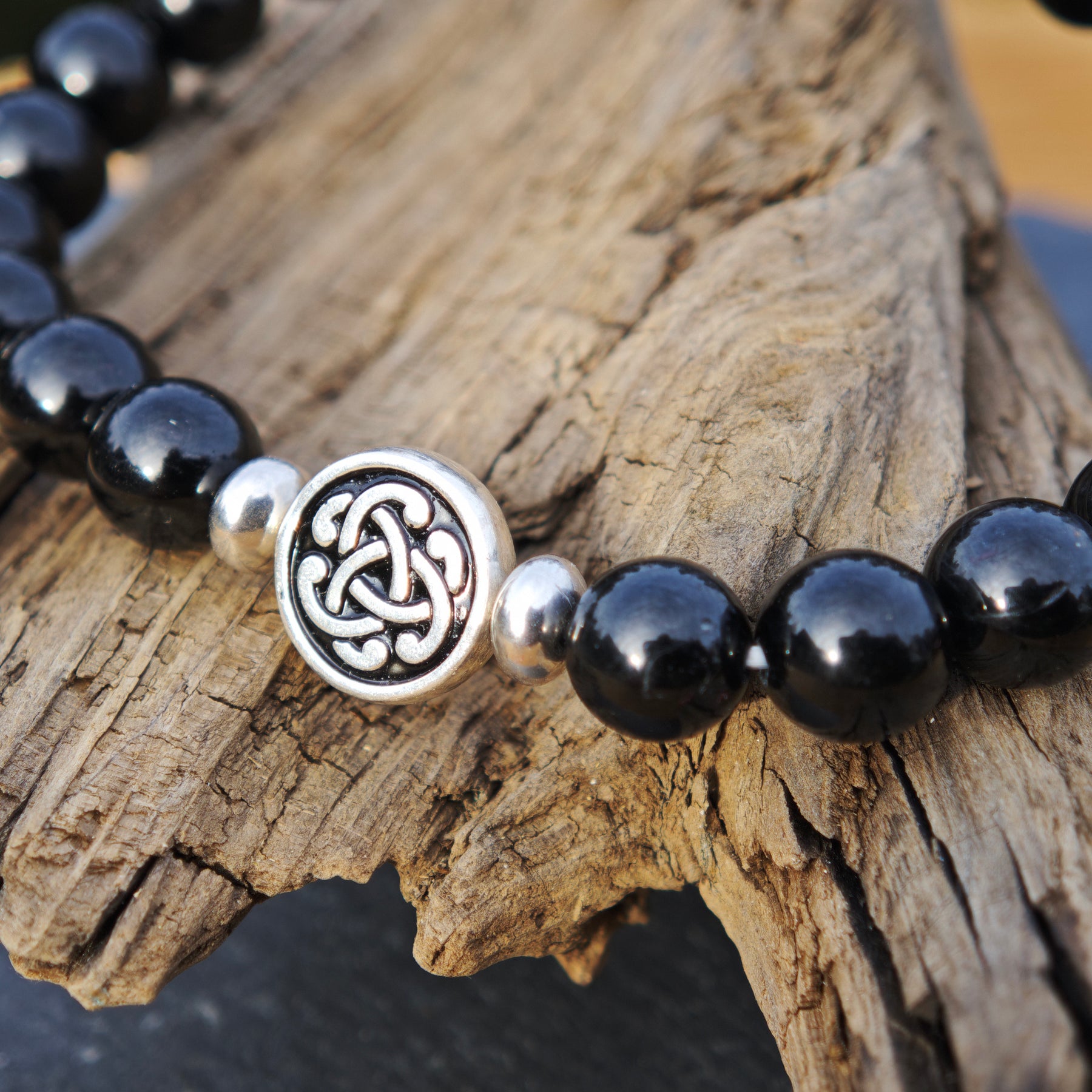 Edelstein Armband ENERGETISCHER SCHUTZ Schwarzer Turmalin Warrierit! Australien S925 keltisch 8mm