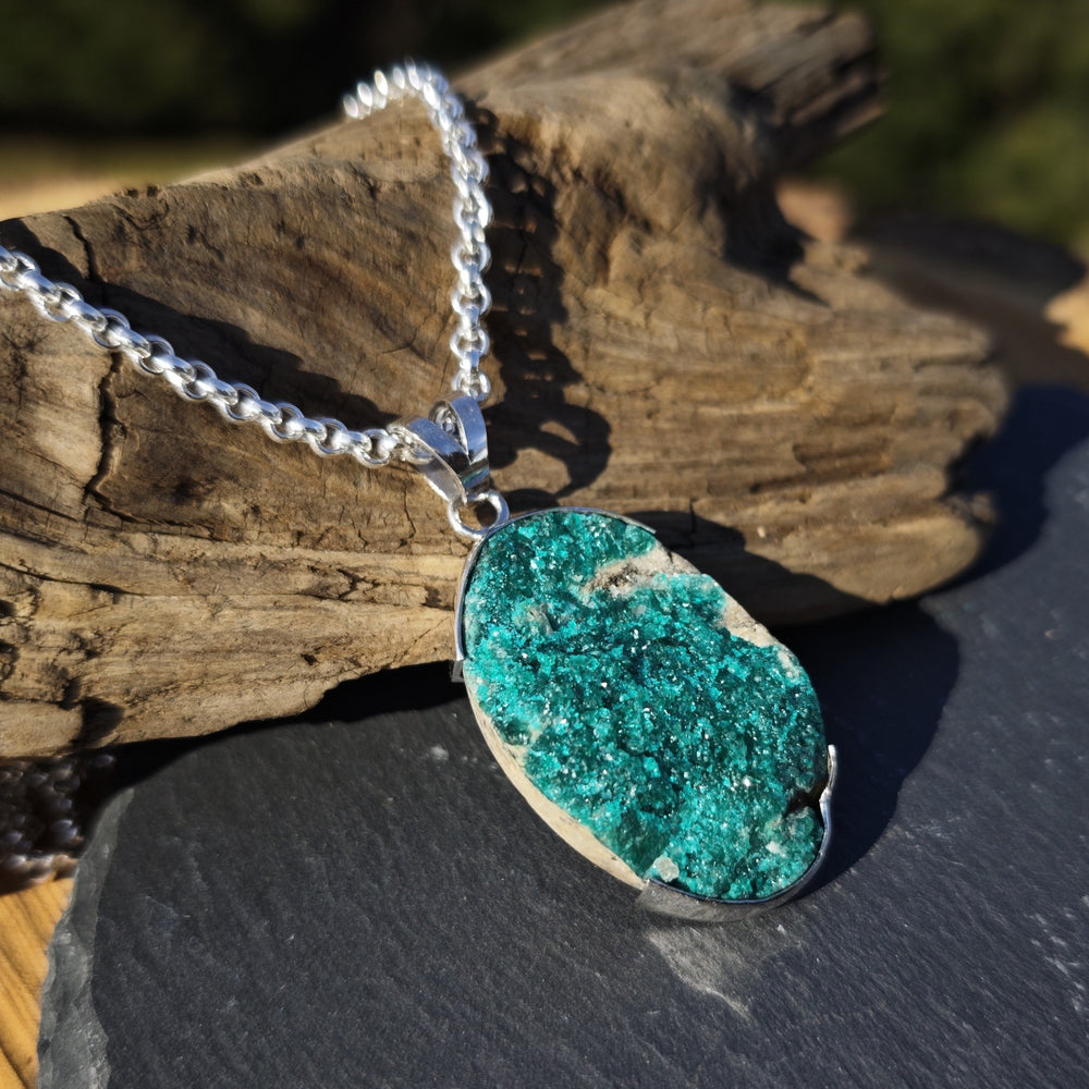 Wunderschöner Dioptas gefasst in Zarge gefasst S925 rhodiniert hochglanzpoliert