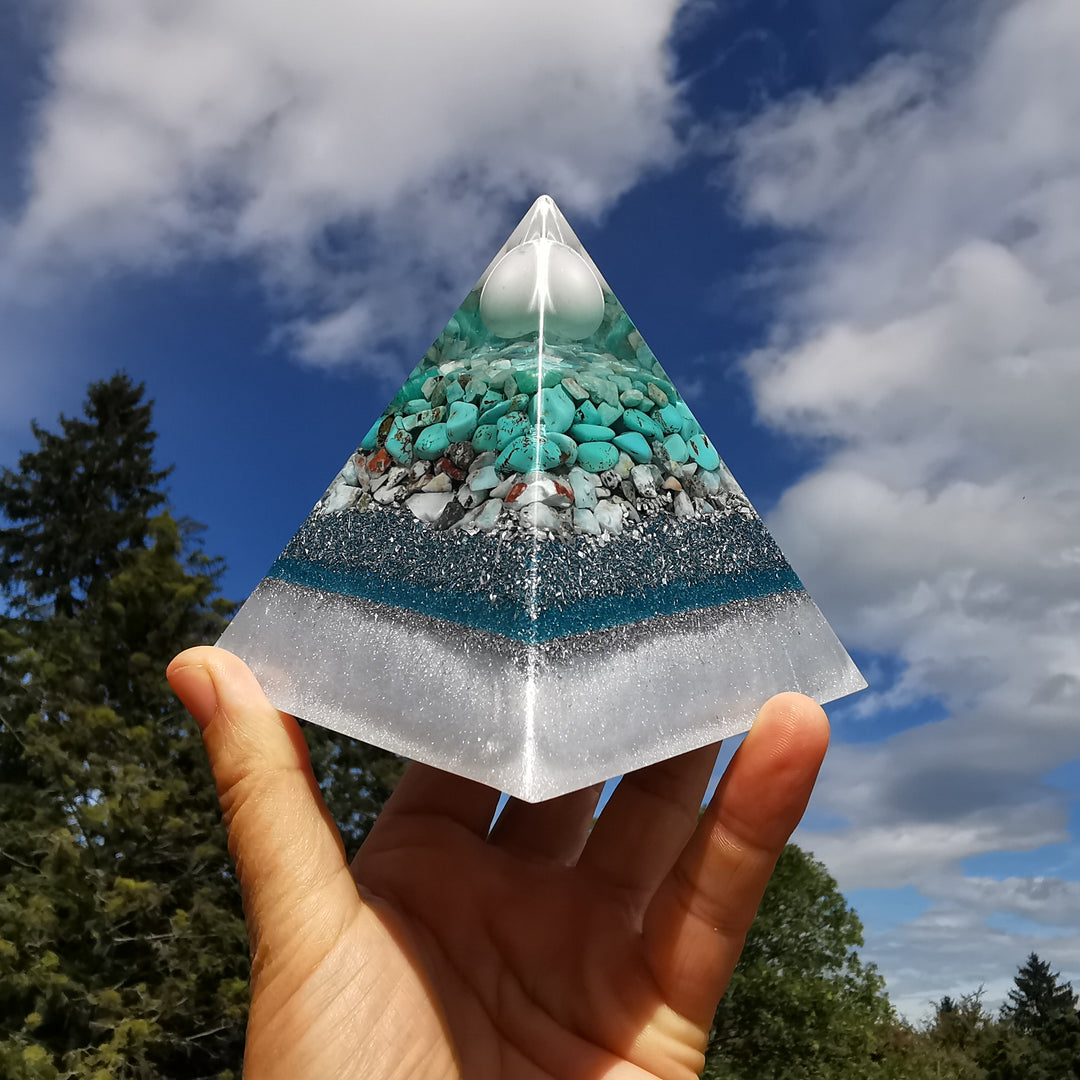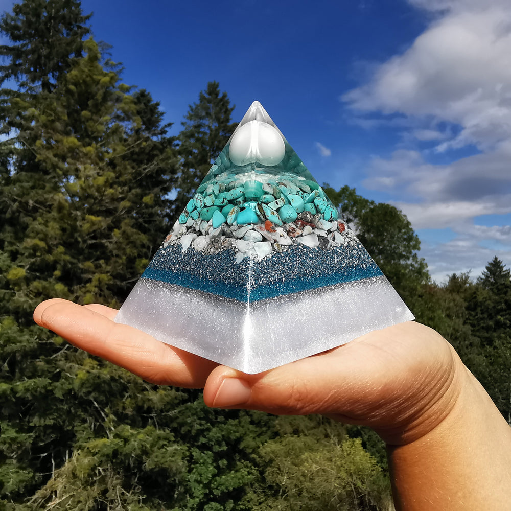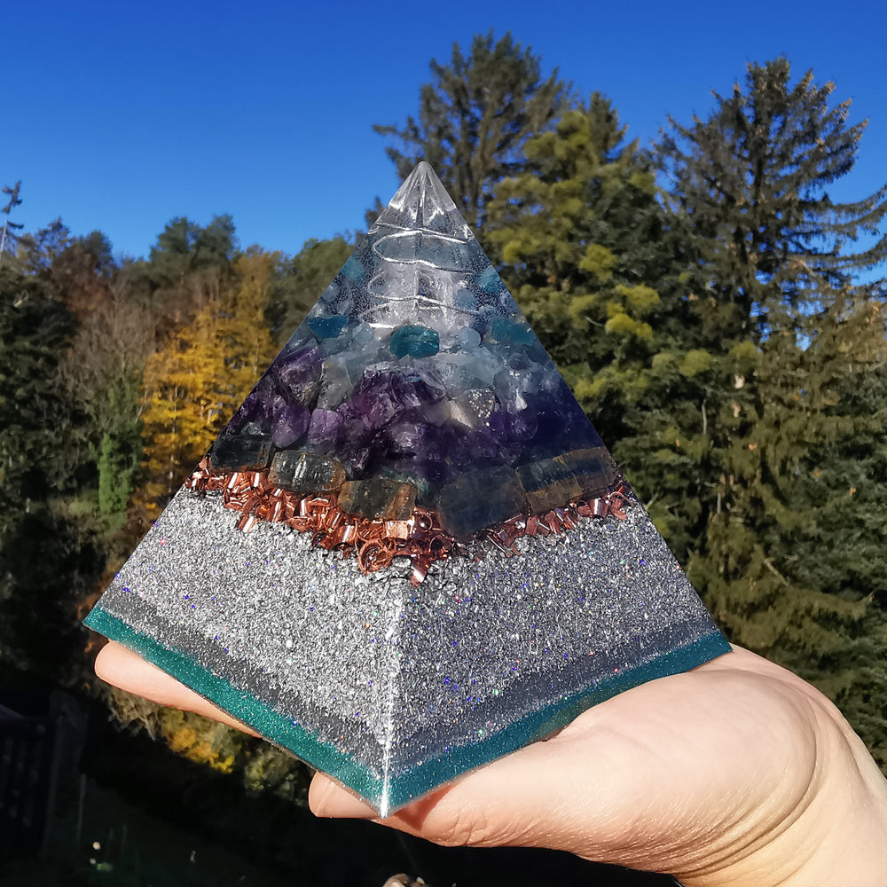Pentagonale Pyramiden basieren auf dem Fünfeck. Das Pentagon mit Spitze nach oben, ist mit Harmonie und Proportion (Leonardo da Vincis „Vitruvianischer Mensch“) verknüpft. Sie symbolisiert auch die Ebene des freien Willens. Das Geistige strömt dem Menschen aus der Höhe entgegen (Pentagon mit Spitze nach oben). Der Mensch hat die Wahl sich zu entscheiden wie er diese Kraft aus dem geistigen für seine geistige Entwicklung einsetzt. Zur Manipulation oder zum Dienst an der Wahrheit und dem Licht. Eine Pyramide gilt als Symbol für Stabilität, Aufstieg und Verbindung von der Basis (Materie) zur Spitze (Geist). Die pentagonale Pyramide kombiniert beides: die Fünf als Zahl der Balance und die aufsteigende Struktur → teils wird sie auch als Symbol für die Verbindung der fünf Elemente mit spiritueller Entwicklung gesehen.