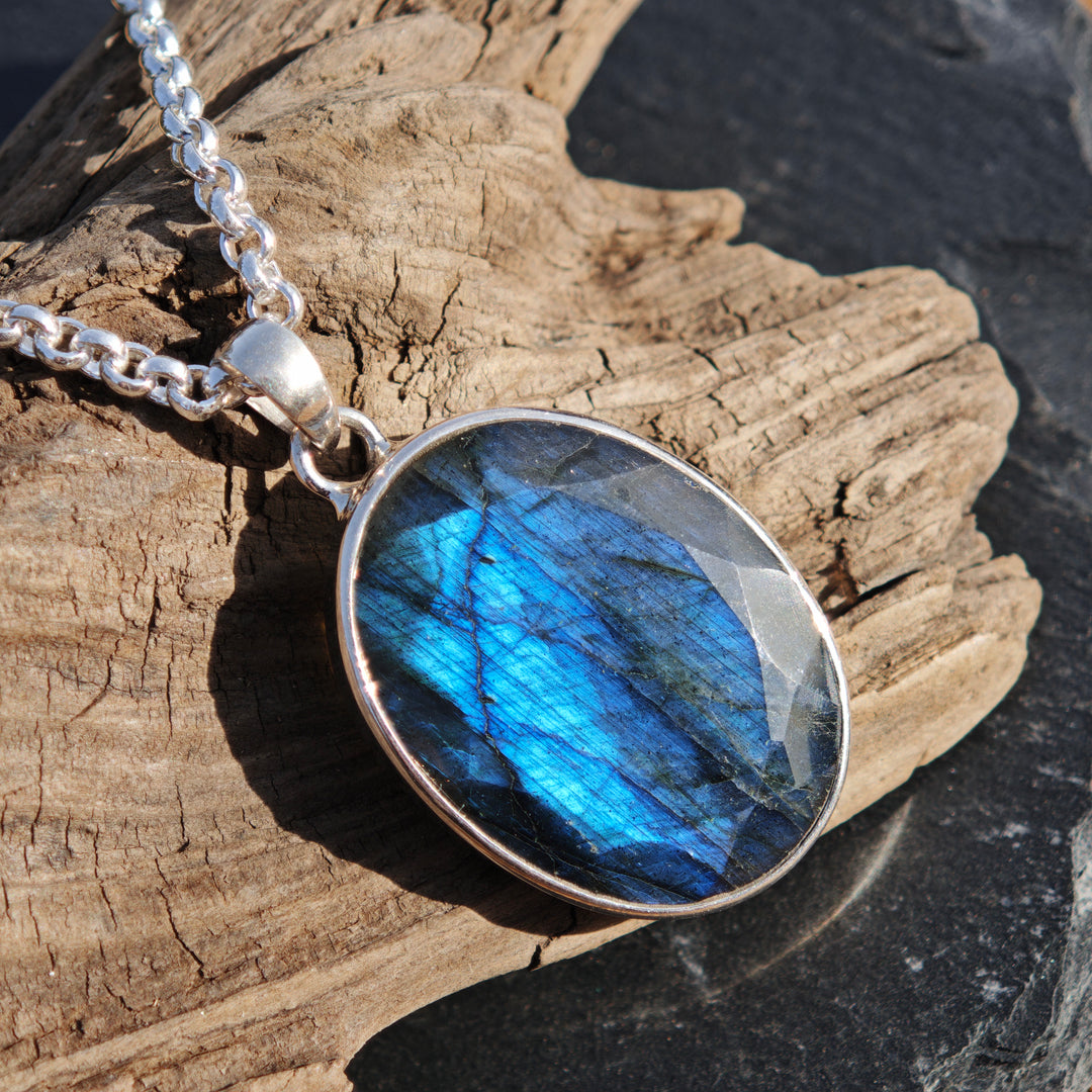 Labradorit öffnet uns die Augen für unsere wahre Identität, stärkt die Intuition und die Medialität. Sein buntes, wechselhaftes Farbenspiel und seine Anwesenheit im Raum fördert Kreativität, Begeisterungsfähigkeit, Phantasie und Ideenfülle. Er schützt vor Energieräubern, vermag aber auch psychische Angriffe abzuwenden, wenn andere negative Emotionen gegen einem verwenden. Er reinigt und schützt zudem die Aura und hilft wenn nötig dabei das Herzschakra abzuschirmen.und öffnet uns für die Erkenntnis, dass auch der Mensch ein Lichtwesen ist.