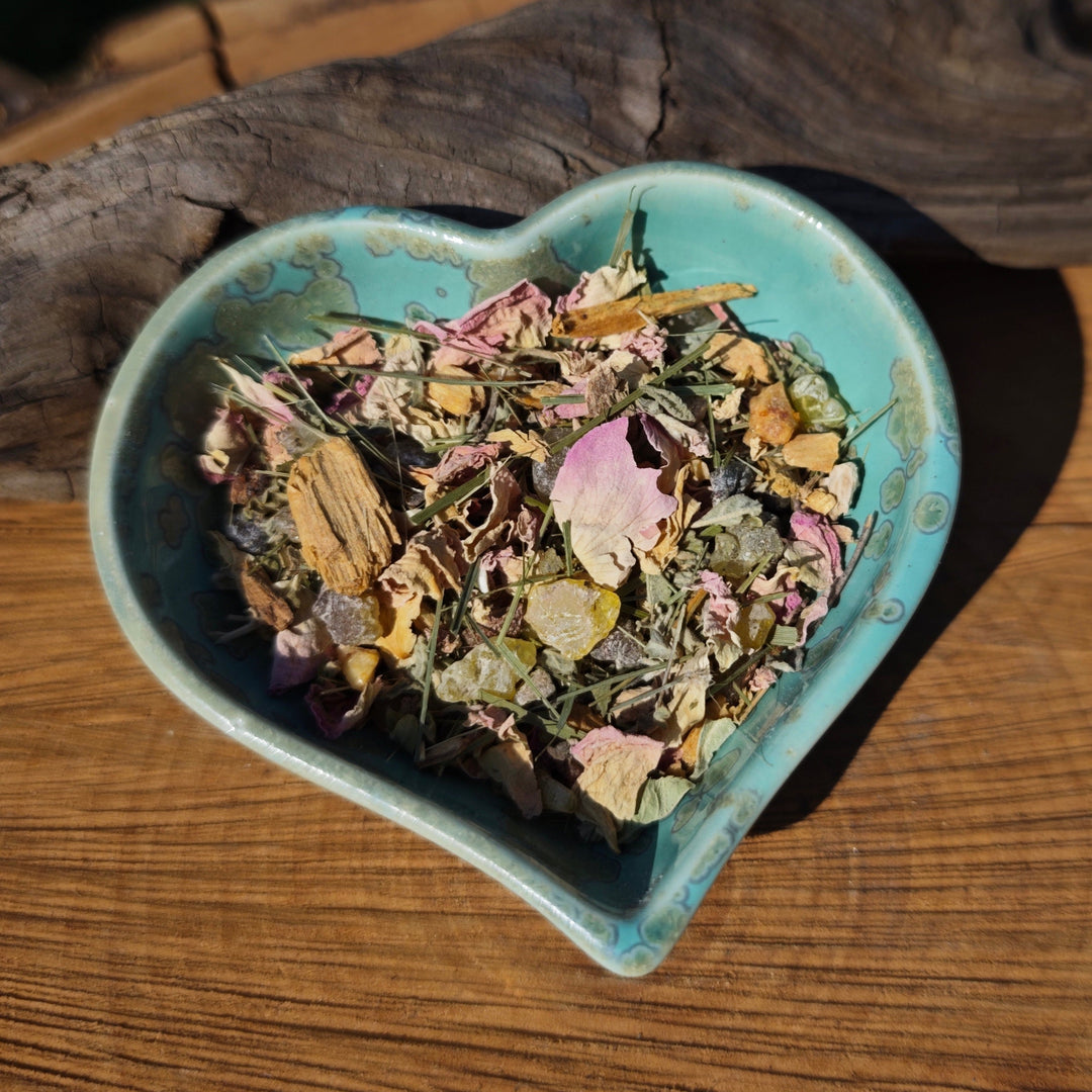 Zum Räuchern von Pflanzenmaterial brauchen wir Feuer. Der aufsteigende Rauch trägt die wertvollen Inhaltsstoffe des Räuchergutes in den Raum. Verwendet wird getrocknetes Pflanzenmaterial, wie Kräuter, Harze, Hölzer, Nadeln und Samen.