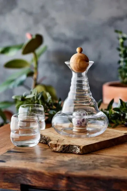 Karaffe Alladin Basic 1,2l Edelsteinfach und Olivenholzstöpsel - mundgeblasen inkl. Wassersteine