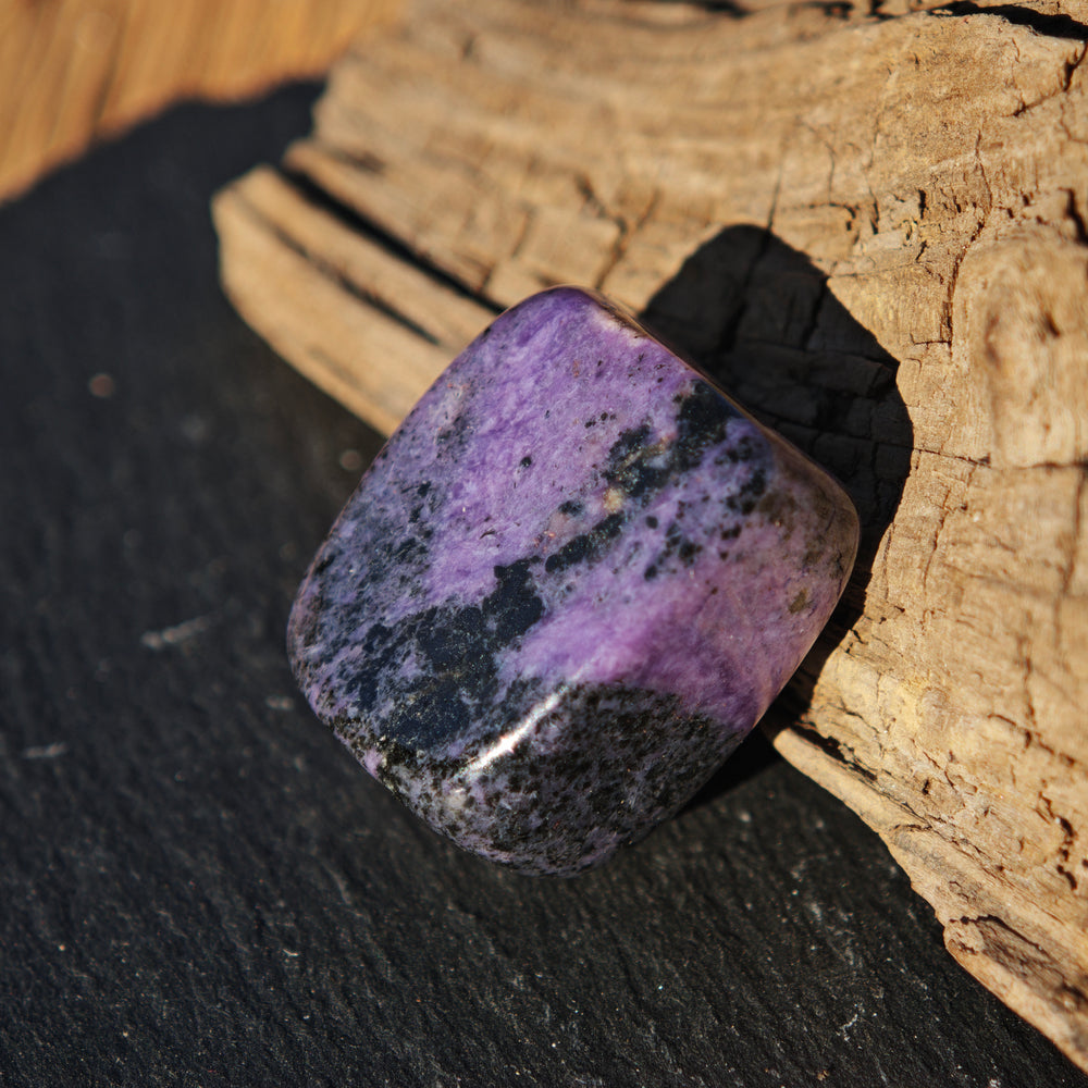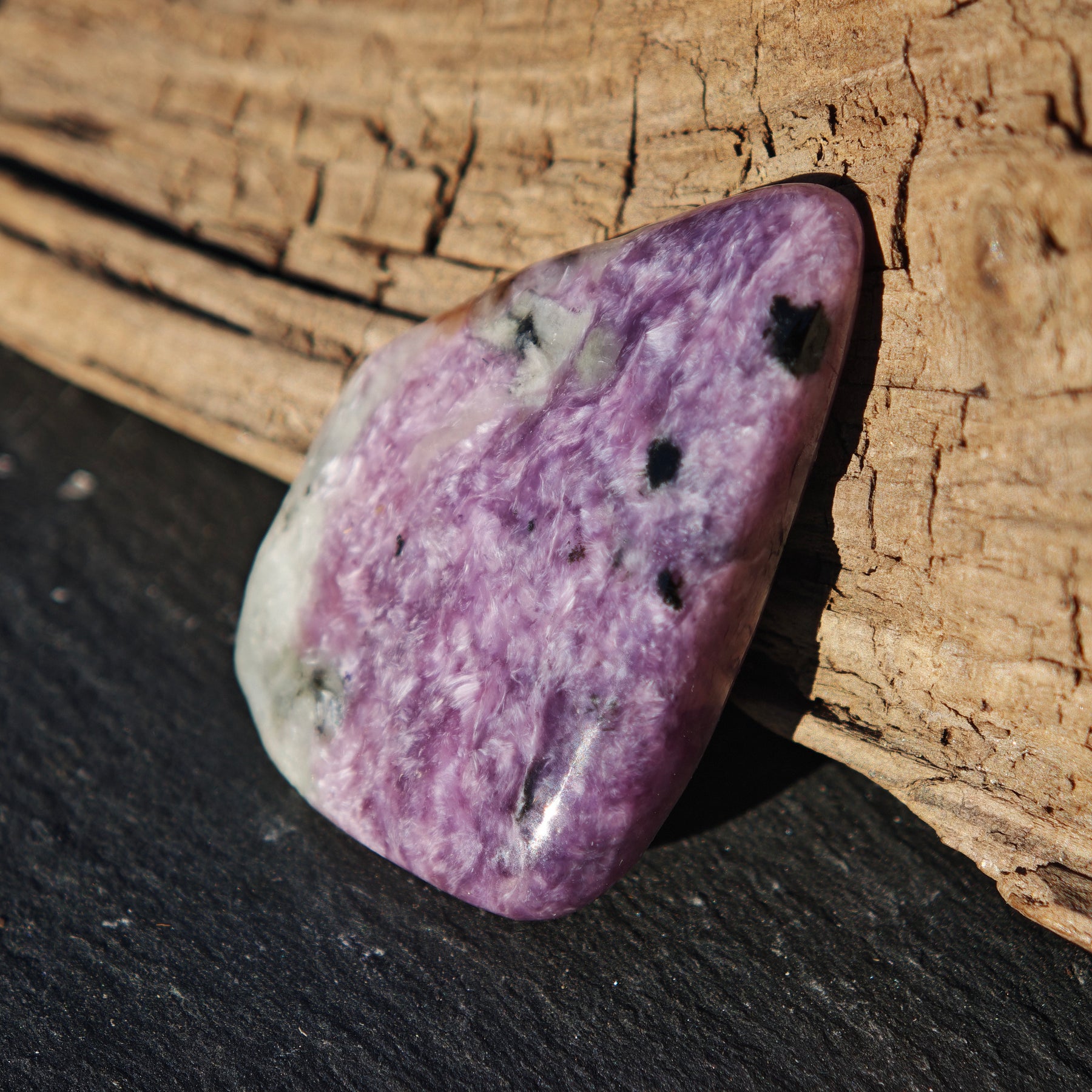 Charoit befreit vor Stress und schützt vor Überarbeitung. Er verleiht einem aber auch die nötige Zähigkeit, den Mut und die Entscheidungskraft einen gewählten Weg konsequent und diszipliniert zu gehen. Ausserdem hilft Charoit dabei sich von inneren Zwängen zu befreien und abzugrenzen.