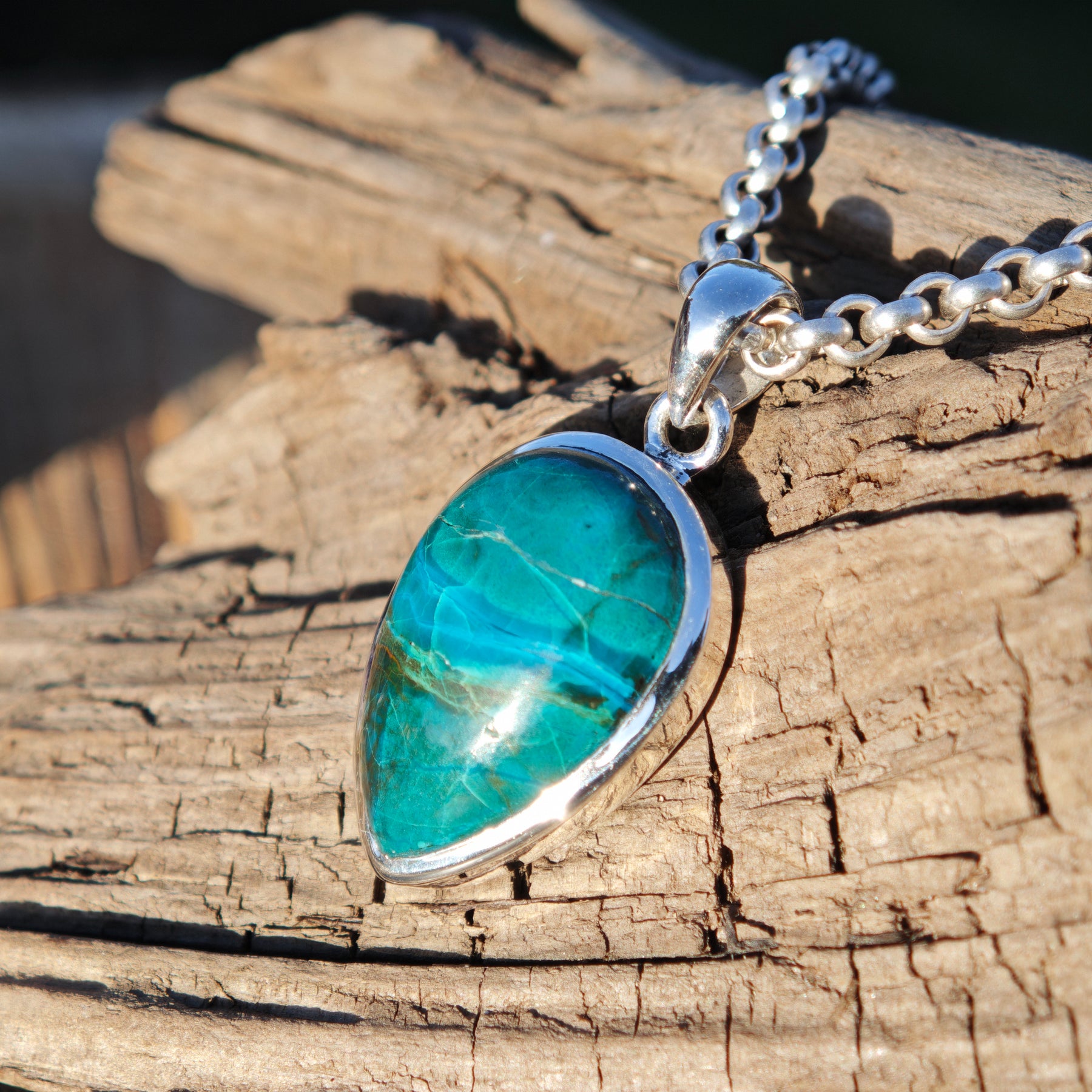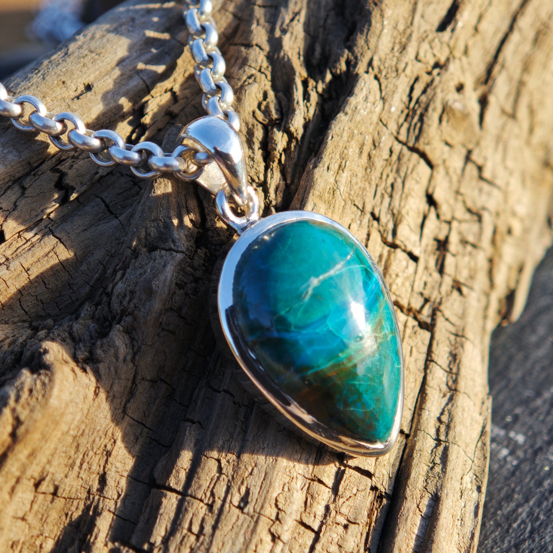 Die ausgleichende Energie des Chrysokolls fördert das Gefühl von Erdung und innerer Stabilität. Chrysokoll wirkt besonders stärkend und beruhigend auf die oberen drei Chakren und bringt den physischen Körper in Einklang mit dem feinstofflichen Energienetz. In der Arbeit mit dem Dritten Auge kann er intensive Visionserfahrungen fördern.