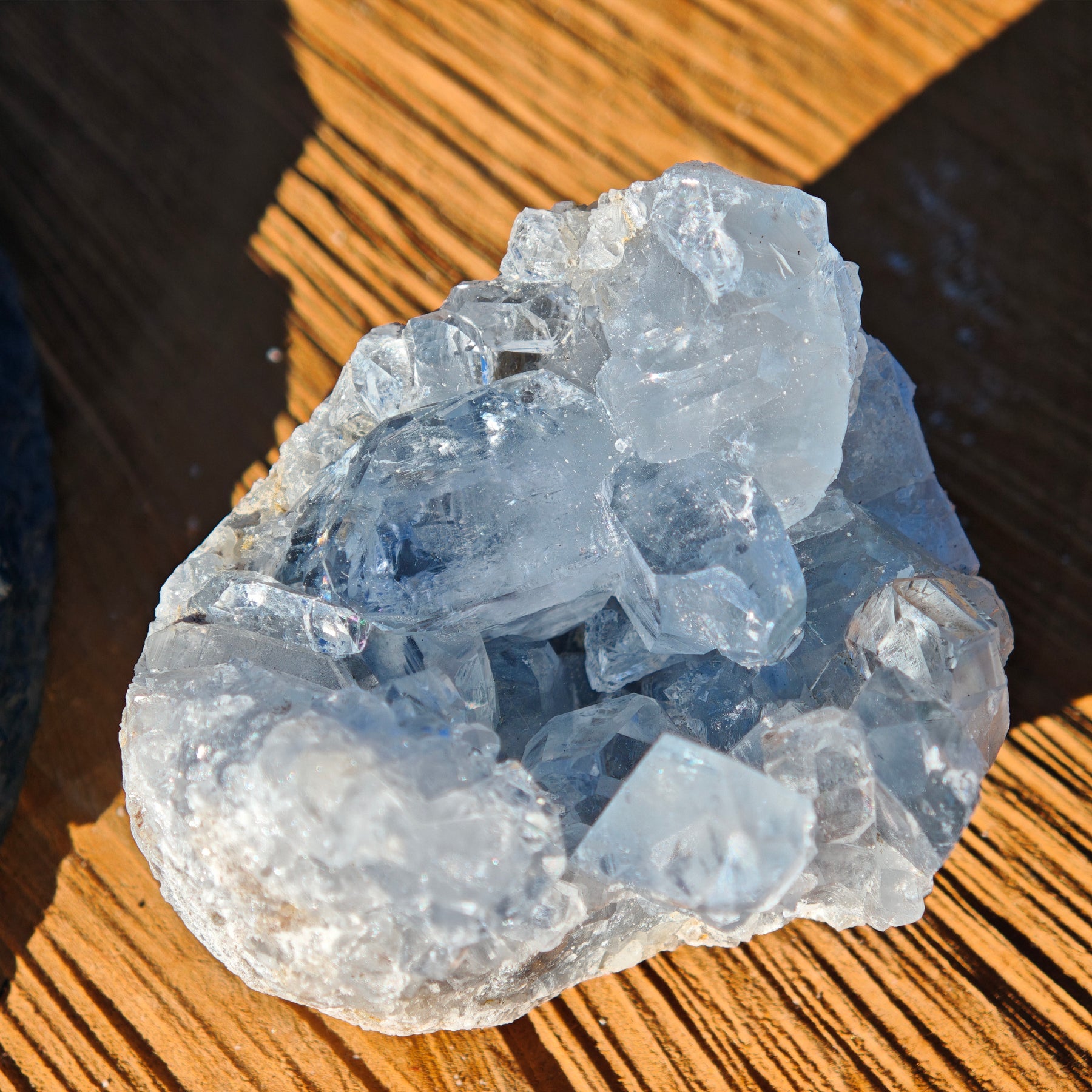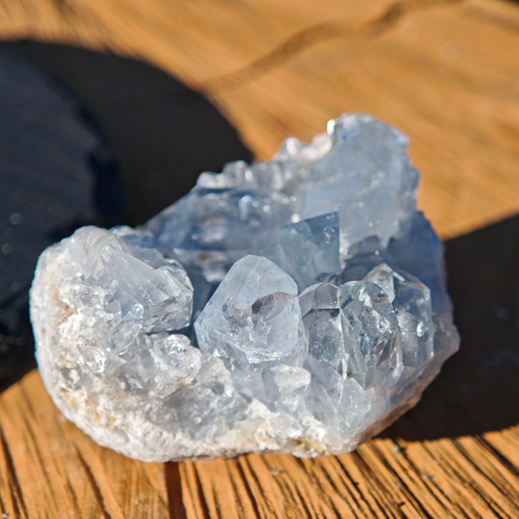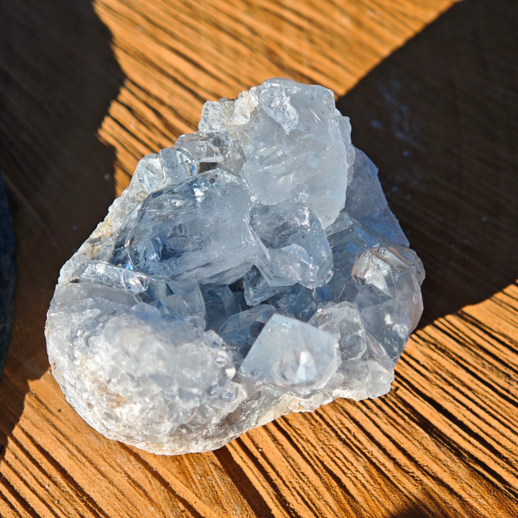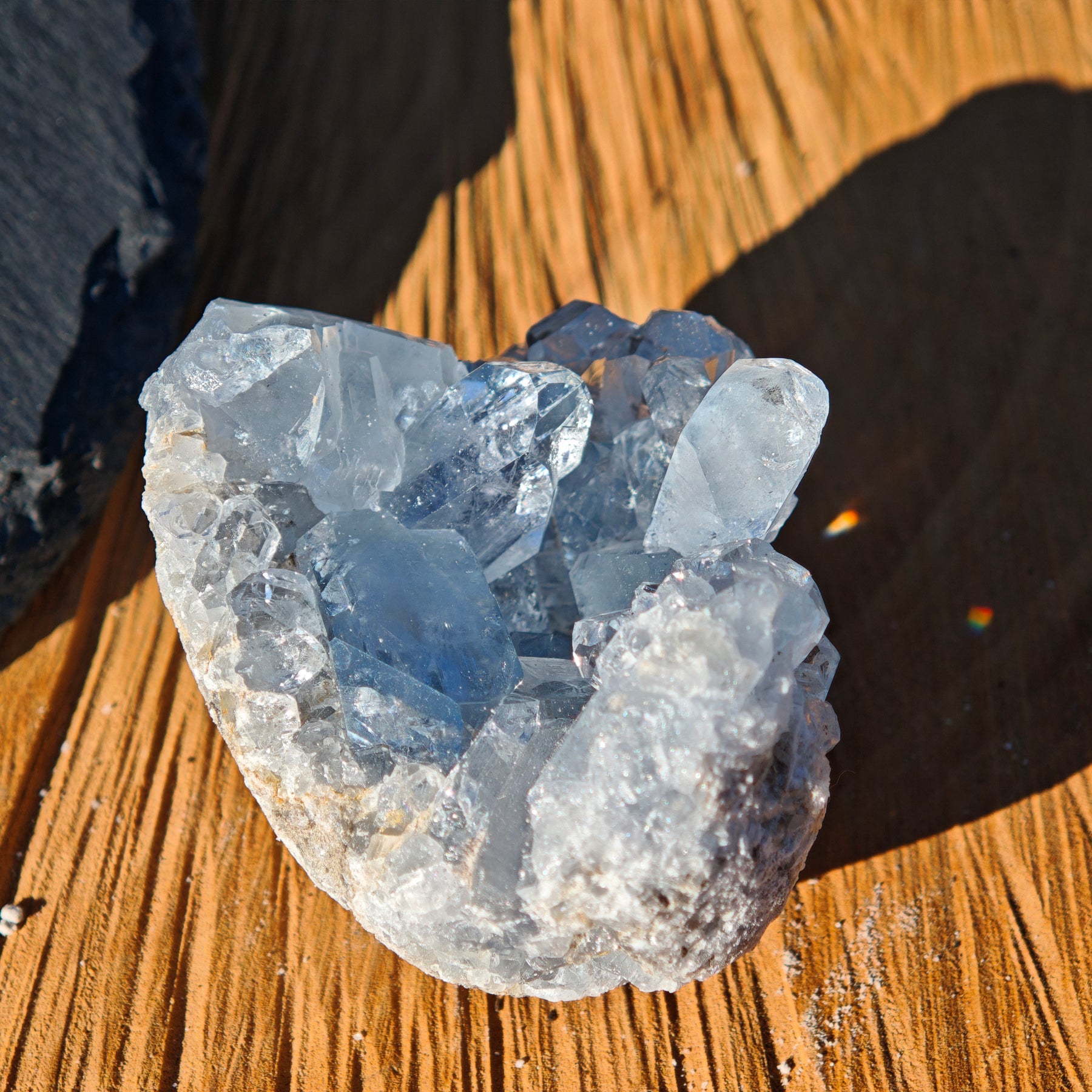Der blaue Coelestin eignet sich für alle geistigen Aktivitäten, insbesondere um reale Probleme zu analysieren. Besonders hilft er dabei ein Problem, eine Situation oder eine Vorstellung in seiner ganzen Weite zu überblicken. Besonders zu erwähnen sind seine abschirmenden und reinigenden Eigenschaften auf die Chakren und die Aura welche durch ihn ausgeglichen, klar und rein werden. Der Coelestin kann als Hoffnungsstrahl in düsteren Tagen wirken weil er Ruhe und Harmonie ins Leben bringt. Er vermag Schmerz und Chaos in Licht und Liebe zu verwandeln. Wir können aufhören, uns Sorgen zu machen, können uns frei bewegen und immaterielle Werte mit einem klaren und zufriedenen Geist verfolgen. Coelestin verfügt über eine innere Weisheit und hat seinem Benutzer etwas zu erzählen. Das Wissen des Steins hilft meist in spirituellen Bereichen und dient unserer Vervollkommnung. Er eignet sich ausgezeichnet für Astralreisen und die Traumerinnerungsarbeit weshalb ich einen Coelestin im Schlafzimmer oder zur Meditation nur empfehlen kann.