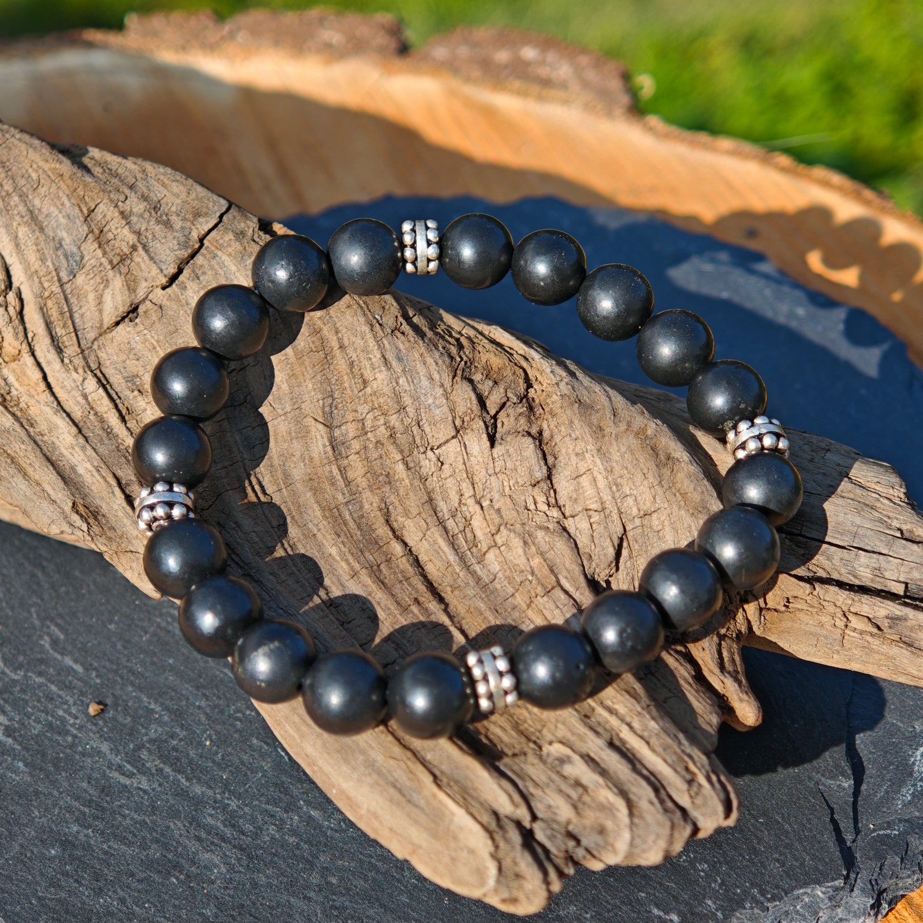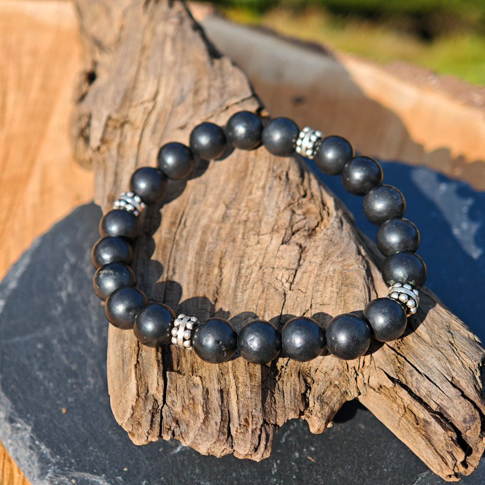 Edelstein Armband NEUTRALISIERUNG mit SCHUNGIT S925 8mm