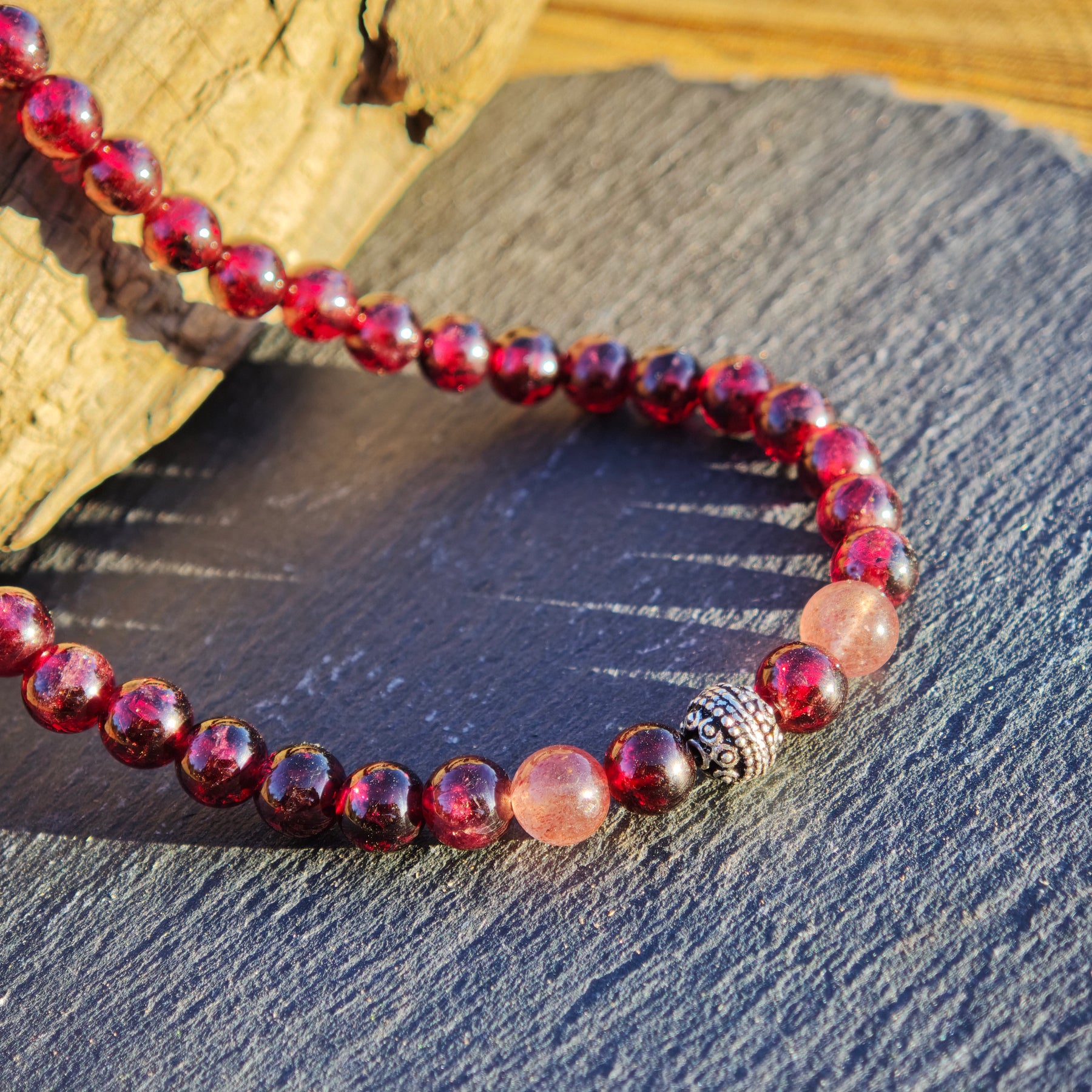 Edelsteinkette WIDERSTANDS- & LICHTKRAFT Granat Erdbeerquarz 6mm Kugel S925
